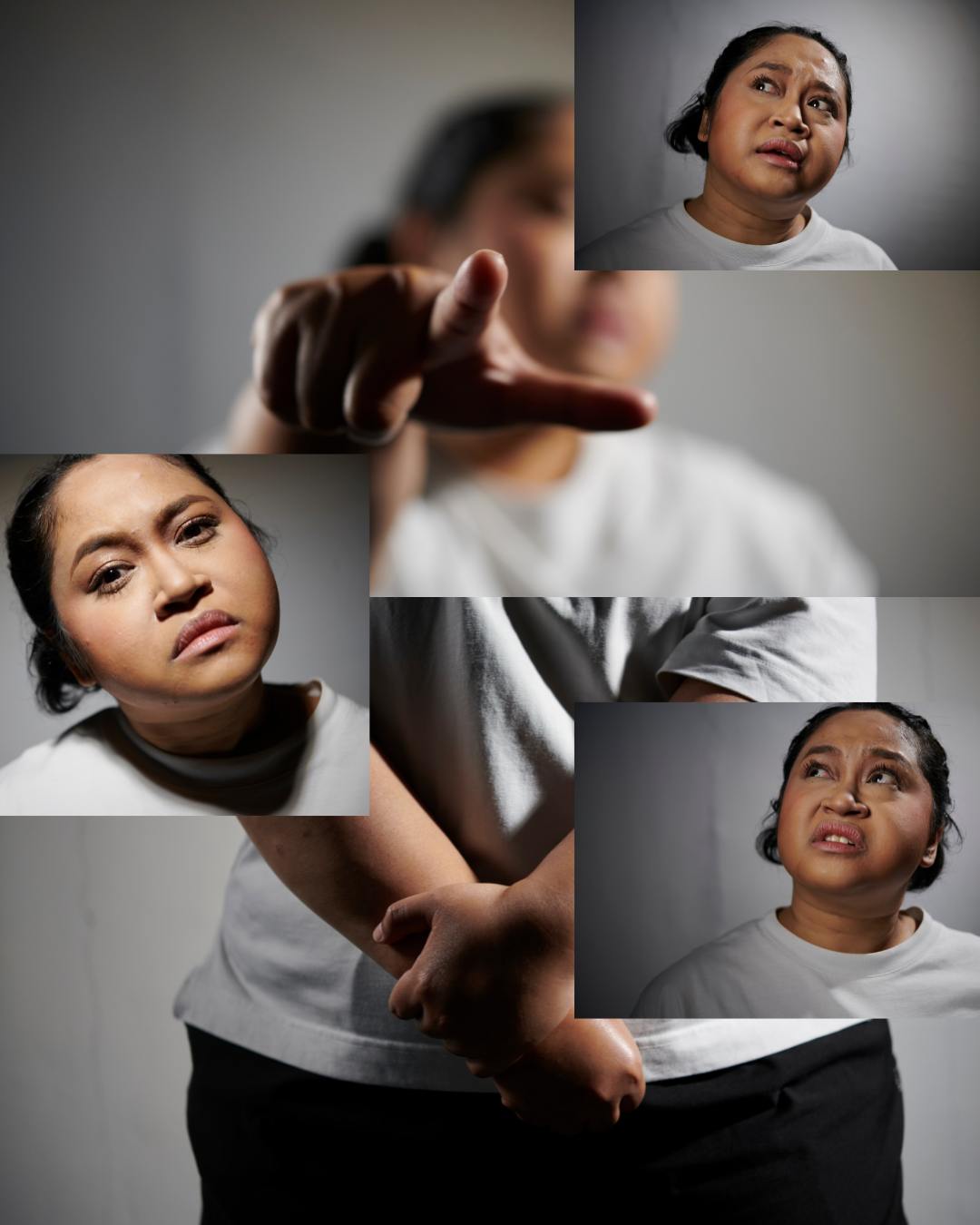 This collaborative approach meant that new ideas often arose organically and spontaneously. “For instance, during a movement improvisation led by Hafeez, Danial suggested inserting a monologue from the perspective of a woman whose photos were shared on SG Nasi Lemak – a now-defunct Telegram chat group known for sharing obscene and voyeuristic content – and having a performer step out to read it mid-sequence,” recalled YY.